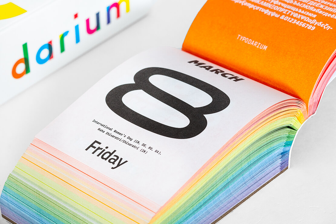 Mit 366 frischen Schriftarten von 292 Typedesignern aus 34 Ländern ist das »Typodarium 2024« wieder ein täglicher Begleiter für alle Design-Enthusiasten geworden. Jeden Tag des Jahres lässt sich eine neue Schrift entdecken, präsentiert in 12 fröhlichen Farben. Die Rückseiten der Tagesblätter bieten wie gewohnt weitere Informationen zu den jeweiligen Schriftarten, den Designern und dem Entwicklungsjahr.