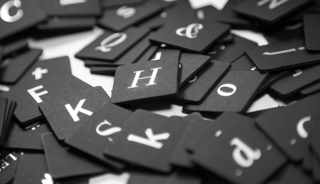 In vier ausdrucksstarken Schriften findet man jeweils alle 26 Buchstaben des Alphabets sowie einige Sonderzeichen. Dazu gibt es 16 Joker-Täfelchen zum Übermitteln von Nachrichten, zum Schmunzeln und Erweitern von Spielvarianten.