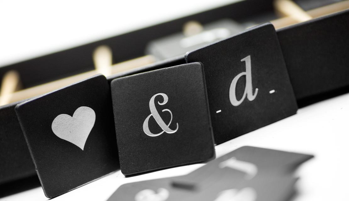 128 Typo-Täfelchen in einem Mini-Setzkasten: Die »TypoMemo Spielbox« ist im Verlag Hermann Schmidt Mainz erschienen und bietet viele Möglichkeiten für typografische Spielereien.